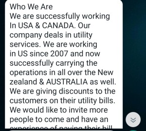 From the information we have received, the scammer is telling customers that they are running a promotion in which you will be able to get a discount off your utility bills. They ask for you to supply various personal details. The scammers have also sent the customer voice recordings through WhatsApp messaging.